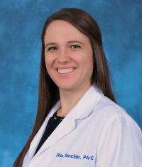 Rita Sinclair, PA-C, graduated from the University of Notre Dame in 2015 with a Bachelor of Science in Preprofessional Studies and a Bachelor of Arts in Psychology. She went on to receive her Master of Science in Physician Assistant Studies from Jefferson College of Health Sciences in Roanoke, VA. She practiced for four years in orthopedics and decided that a change to family medicine would allow her to build deeper relationships with her patients and focus more strongly on patient education. She believes in collaborating with the patient in their care and working to determine a course of action together.